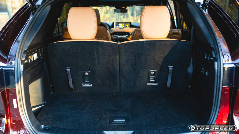 With a total cargo capacity of 40 cubes with the third-row folded down, the CX-90 offers plenty of space for up to five occupants' worth of stuff for a road-trip vacation. With the third row up, however, the space shrinks considerably to 15.9 cubic feet. Class-leading competitors include the Chevy Traverse with its nearly 23 cubes, and the Hyundai Palisade and Kia Telluride, both of which offer closer to 18 cubes.