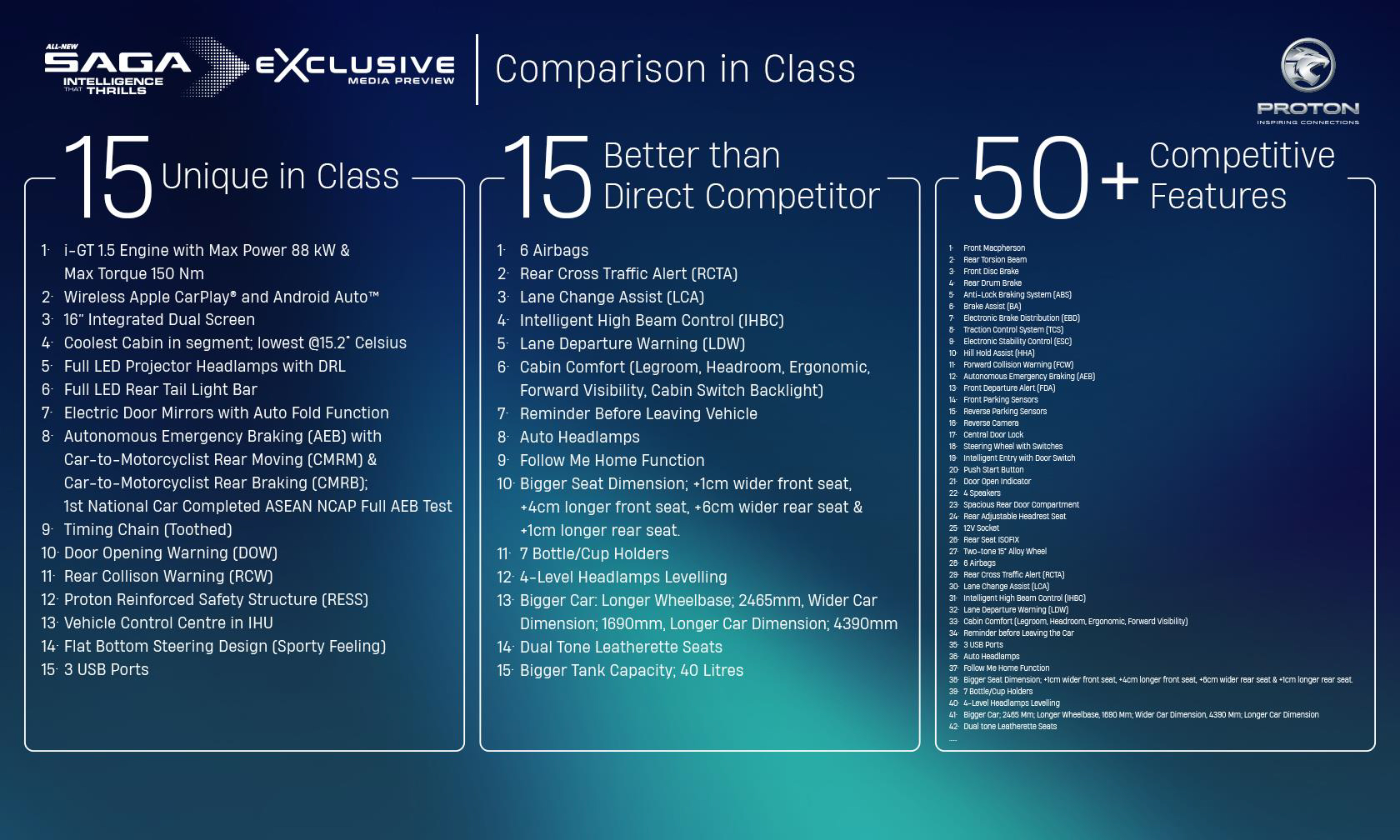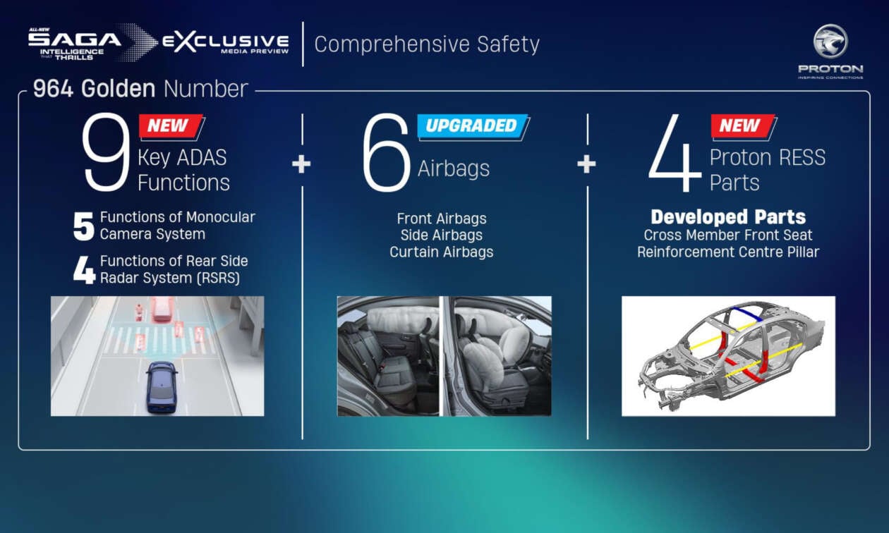 Finally, after months of leaks, teasers and even an unveiling at the recent ASEAN Summit, Proton has finally revealed the new Saga in full. We now have all the details on the new engine and transmission, the AMA platform and the new features, with only the price and detailed variant breakdown still unknown. It goes without saying that the new model is a Very Big Deal for the national carmaker as the latest iteration of its first nameplate, its best-seller and the traditional centre of its lineup. More than 2.1 million units have been produced, including over 1,139,000 units of the original (plus the Iswara and subsequent variants), 549,000 units of the second-generation Base Line Model (BLM) and 449,000 units of the 2016 Saga. No pressure, then. Let’s get stuck in. Heavily-revised AMA platform with HPF steel panels It is well known by now that the new Saga retains the same basic platform and body structure as the outgoing model, meaning that you can trace its roots all the way back to 2008 with the BLM (itself related to the Savvy from 2005). But while it is disappointing that this isn’t an all-new car – despite what Proton claims, in addition to calling it a fourth-generation model – simply mentioning the carryover bits doesn’t do justice to the reengineering done under the skin. The platform is a heavily-revised version that Proton calls the Advanced Modular Architecture (AMA). Despite the name, the new Saga retains its predecessor‘s 2,465 mm wheelbase, although officials have said that future models built on the platform will be able to be made longer or shorter. Proton claims that AMA is “flexible, scalable and future-ready” and is designed to meet international safety, performance and efficiency standards. It adds that it owns the full intellectual property rights for the platform, reinforcing its “growing engineering capability.” The company is open to collaboration across the Geely Group, it says, “potentially positioning Malaysia as a regional engineering hub for future model development.” Might we see Proton-based Geely models instead of the other way around? Only time will tell. Oh, and of course, this new Saga is the first not to be built at its stomping ground of Shah Alam. That plant is now closed, so production the latest model has been moved to Tanjong Malim, where the preview event and brief test drive was held last week. The adjacent engine factory that used to build the GEP3 three-cylinder is also now running at full steam churning out the car’s new engine, which we’ll get to later. The other big news is that while the structure is largely unchanged, it has been reinforced with hot-press-formed (HPF) steel B-pillars and floor cross member, along with an advanced-high-strength steel roof cross member and high-strength steel door bars. This is presumably to improve crash protection; even so, the Saga only manages to defend its four-star ASEAN NCAP rating, albeit on the newer, stricter 2021-2025 protocol. The Bezza managed five stars, but on the original, most lenient 2012-2016 protocol. Six airbags and AEB, but only on top-spec Premium Still on the topic of safety, the other major advantage of this rearchitecting is the ability to fit some much needed new technologies. Having previously been at the forefront in this area, Proton has lagged behind its main rival Perodua on its indigenously-designed models, which hitherto were not available with driver assists beyond stability control. The Saga was also only offered with two airbags across the range. The MC3 refresh changes all this, and how. You now get up to six airbags and some advanced driver assistance systems – autonomous emergency braking, lane departure warning, front departure alert and automatic high beam can all be had for the first time. Despite being tested on the 2021-2025 protocol, the Saga is claimed to be the first Malaysian car to pass ASEAN NCAP’s new AEB test for motorcycle detection, which will only be used officially starting with the forthcoming 2026-2030 protocol. Rear side radar sensors, on the other hand, add blind spot monitoring, rear cross traffic alert, rear collision warning and a door opening warning. However, the Saga still misses out on Level 2 semi-autonomous driving features like adaptive cruise control and lane centring assist. We should also point out that all the items mentioned are exclusive to the top-spec Premium trim, with other variants stuck with just two airbags and no ADAS. High-output BHE15PFI, timing chain, 14.04% lower fuel consumption Right, no more beating around the bush – by far the biggest change is under the bonnet. Say goodbye to the long-serving 1.3 litre VVT engine from the CamPro family, and hello to the 1.5 litre BHE15 from the facelifted X50. It retains a four-cylinder layout and Intelligent Green Technology (i-GT) branding, but the turbo and direct injection have been ditched, making the BHE15PFI Proton’s first Geely-derived naturally-aspirated mill. Whereas previous 99 PS and 111 PS versions of this engine were exclusive to plug-in hybrid applications such as the Geely Galaxy Starship 7/Starray EM-i (set to become the Proton eMas 7 PHEV), the high-output pure-petrol tune used in the Saga – codenamed BHE15-CFN – is very new, having only been added to the fourth-generation Emgrand (not to be confused with the new fifth-gen model) earlier this year. This port-injected version replaced the Emgrand’s outgoing direct-injected BHE15-AFD, which should reduce instances of carbon buildup. Outputs are rated at 120 PS at 6,100 rpm and 150 Nm of torque between 4,000 and 5,000 rpm – healthy increases of 25 PS and 30 Nm over the outgoing Saga, and a similar margin over its arch nemesis, the Perodua Bezza 1.3 (95 PS and 121 Nm). In fact, the new car damn near matches the Honda City in power (121 PS) and beats it in torque (145 Nm). Proton claims the new engine not only delivers more power than before, but also reduces the Saga’s fu
