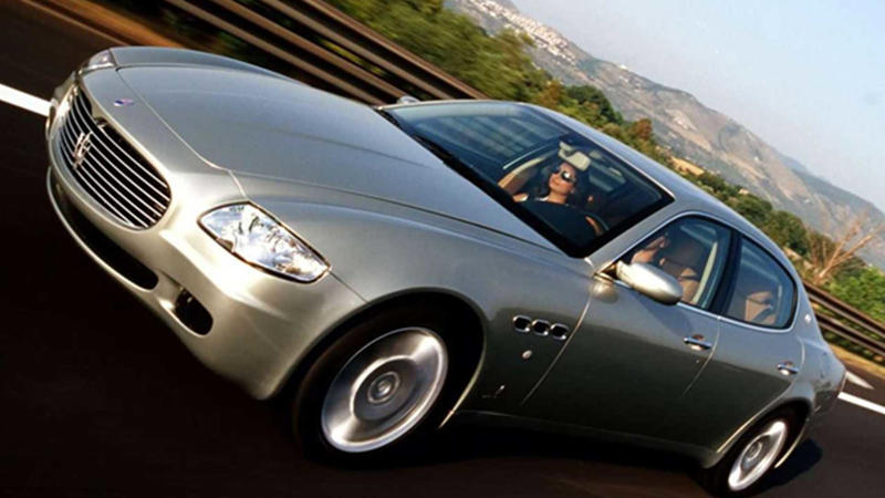 2005 Maserati Quattroporte Silver Front Angled View Driving