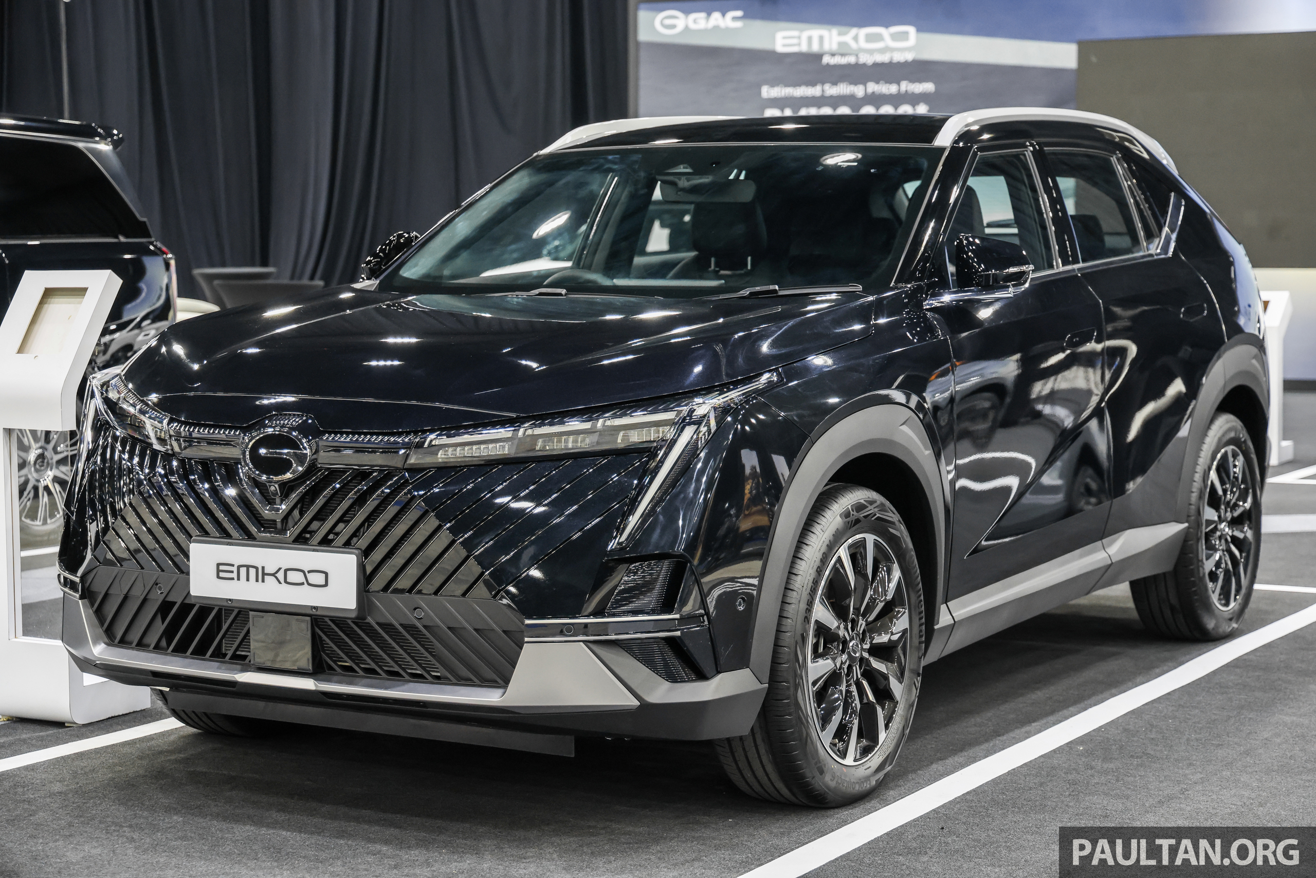 Source: GAC Emkoo public preview at PACE 2025 – C-segment SUV with 1.5 TGDI, 7-speed DCT; CKD from RM120k