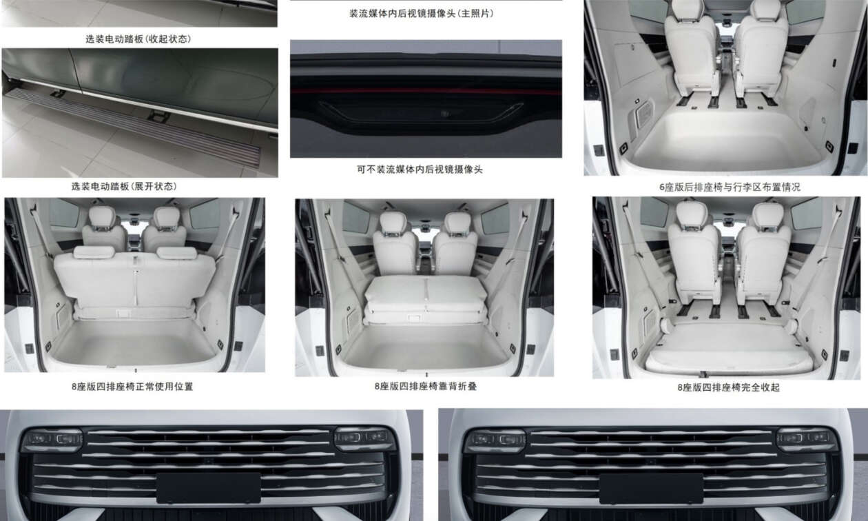 The Geely Galaxy V900 MPV has been shown in a filing with China’s ministry of industry and information technology (MIIT), showing the extended-range electric vehicle (EREV) version of the battery-electric LEVC L380 that was shown in December 2023. Measuring 5,360 mm long, 1,998 mm wide and 1,940 mm tall, the extended-range V900 is slightly longer than the fully electric L380 that measures 5,316 mm long. Rolling stock for the V900 are alloy wheels ranging from 18 inches to 20 inches in diameter. The Galaxy V900 is fashioned largely after the L380 it is based on, albeit with a different front fascia that retains the lighting arrangement of daytime running lights located above the main headlamps. Compared to the L380, the V900 here appears to gain a lidar unit on its roof. Meanwhile, optional equipment for the V900 includes powered side steps. Inside, the V900 gets a three-row seating layout as standard with a 2-2-2 seating configuration, and it can be optioned to accommodate up to eight occupants, in a 2-2-2-2 layout with an additional, fourth row of seats. Depending on seating configuration, the kerb weight of the V900 ranges between 2,910 kg and 3,030 kg; the fully electric L380 weighs a claimed 2,805 kg. According to Car News China, the luggage compartment of the six-seater V900 has a depth of 919 mm, while that of the four-row, eight-seater is 347 mm deep, though the fourth row can be folded flat into the boot floor. Two battery specifications are stated for the V900, starting with a 43.3 kWh ternary NMC battery made by CALB, that offers up to 172 km of electric running, and the second is a 50 kWh ternary NMC battery by CATL, providing up to 202 km of electric running. Powertrain for the V900 is comprised of a BHE15-CFZ 1.5 litre turbocharged petrol engine rated at 120 kW (163 PS), which operates as a generator. Claimed fuel consumption for the V900 when its battery is depleted, is up to 7.2 litres per 100 km. According to the report, the V900 is expected to enter the Chinese market this year, and with the battery-electric version of the MPV set to go on sale in the United Kingdom in 2026, Geely could introduce both battery-electric and range-extended electric powertrains to the UK market.