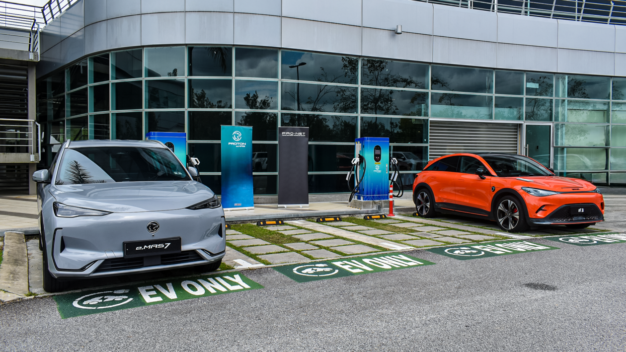 Proton’s new energy subsidiary Pro-Net has opened its first DC fast charging station at its plant in Tanjong Malim. The 120 kW facility, which houses two chargers (each with two guns), allows four EVs to be charged simultaneously, regardless of make and model. Charging there costs a reasonable RM0.80 per kWh (said to be one of the lowest rates in the country), discounted a further 50% to RM0.40 per kWh from now until October 31. More importantly, while other DC chargers at Proton eMas dealers are operated by third-party charge point operators (CPOs), the ones at Tanjong Malim are operated by the company itself, without the use of an app. Instead, users can scan a QR code at the chargers to access a web-based interface to pay for charging. Proton eMas and smart users will, of course, be able to access the chargers through the eMas and Hello smart apps. The carmaker says the move demonstrates its ability to run its own charging network having received its own electric vehicle charging system (EVCS) licence from the energy commission (ST), enabling it to exert “greater control over affordability, accessibility and [the] user experience.” “This charging hub is a significant step forward for us, not just as a facility but as part of our commitment to build a stronger EV ecosystem for Malaysia,” said Pro-Net CEO Zhang Qiang. “By keeping the service affordable and simple to use, we hope to make EV adoption more appealing for everyone. Tanjong Malim is where Pro-Net’s story began, so it is fitting for us to also start this new chapter here.” The news comes hot on the heels of Proton opening its first EV plant in Tanjong Malim earlier this month, with CKD eMas 7s already rolling off the production line, “closely followed” by the forthcoming eMas 5. The company says the factory is set to “generate new jobs, nurture local talent and support the growth of a robust EV ecosystem that positions Tanjung Malim as the nation’s hub for electric mobility.”