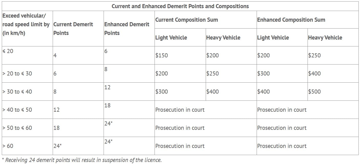 Source: Singapore to impose harsher penalties for speeding from Jan 1, 2026 – more demerit points, heftier fines
