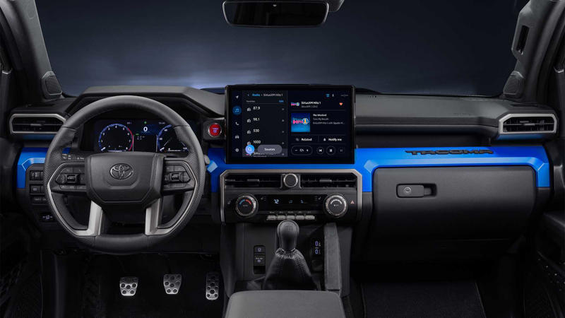 2024 Toyota Tacoma TRD Sport interior with manual dash with anodized blue trim.