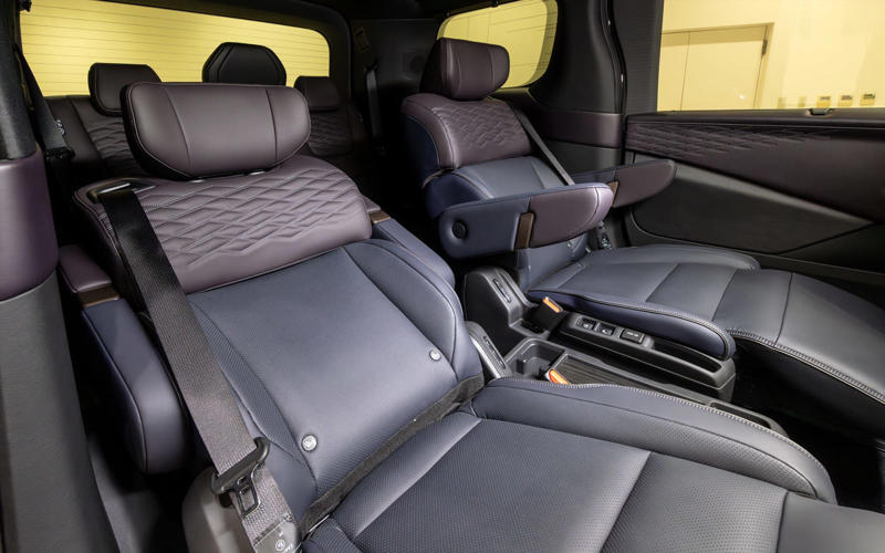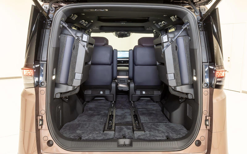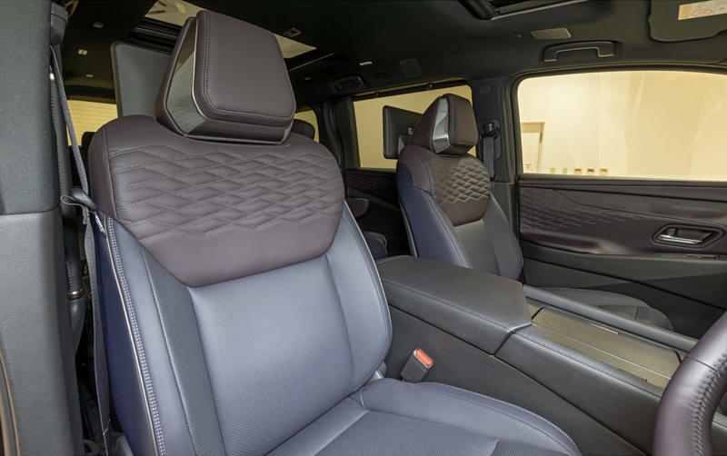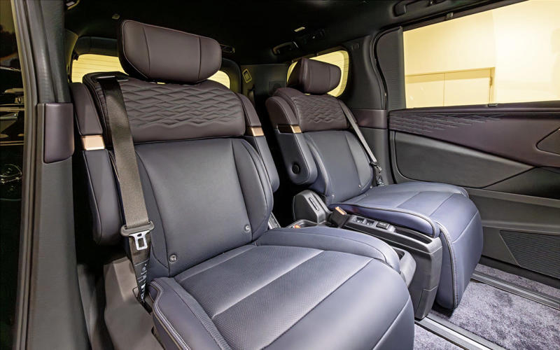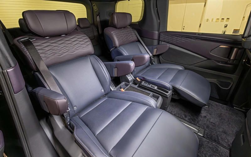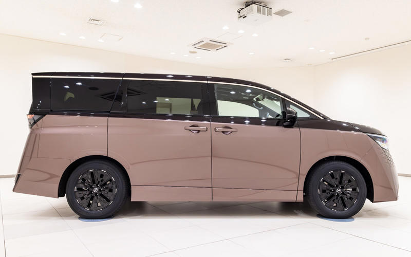 2026年夏に発売予定の新型「エルグランド」日産自動車が誇るプレミアムミニバンが「エルグランド」。広い室内と高級な内装を両立させて新たな市場を開拓したパイオニアに、およそ16年ぶりとなる新型車が登場する。なお、発売は2026年夏が予定されており、現時点では詳細スペックは未公表となっている。 エルグランドが登場したのはRVブームに沸く1997年。その後、スポーティな外観が特徴の「ハイウェイスター」やプレミアムな内外装の「ライダー」を追加し、スポーティ&プレミアムというキャラクターを確立した。2002年には2代目が登場し、迫力あるフロントマスクと存在感あふれるエクステリア、ゆとりあるインテリア、V型6気筒3.5リッターエンジン+5速ATの組み合わせによる爽快な走りなど大幅な進化を遂げている。続く3代目は2010年にデビュー。駆動方式をこれまでのFRからFFに変更するとともに、エンジン搭載位置を下げて低床化。乗り心地と操安性、静粛性を大幅に向上させた。 4代目となる新型は「LIMITLESS GRAND TOURER」をコンセプトに、第3世代の「e-POWER」、電動駆動4輪制御技術「e-4ORCE」、スカイライン「400R」に採用されていた「IDS(インテリジェントダイナミックサスペンション)」を組み合わせて搭載したのが大きなトピックになる。 第3世代のe-POWERは、専用設計の新型「ZR15DDTe」エンジンを核にモーター、発電機、インバータ、減速機、増速機を一体化した「5-in-1 e-POWER パワートレインユニット」とすることで剛性を高め、静粛性と省燃費性を大幅にアップ。パフォーマンスの底上げを図ったうえでモーターとブレーキを統合制御するe-4ORCEにより、車体の前後揺れを抑えるとともに、リア駆動力を高めてコーナリング性能を向上。そして、走行シーンに応じて減衰力を自動調整する電子制御サスペンションIDSが車体姿勢を緻密にコントロールし、あらゆる路面で良好な乗り心地を実現する。 加えて6つのドライブモードが用意されており、それぞれ前述した3つの機能を最適化することでシーンにかかわらず快適な走行、乗り心地を実現する。もちろん、高速道路での運転を支援する先進運転支援システム「プロパイロット 2.0」「プロパイロット」も搭載しており、プロパイロットは新たに50km/h以下のスピードでのハンズオフ走行(グレード別装備)に対応。ウインカー操作により車線変更支援を行なう機能も追加となった。 ボディサイズは4995×1895×1975mm(全長×全幅×全高、日産測定値)。3代目よりひと回り大きくなったボディは、「THE PRIVATE MAGLEV」(MAGLEV:リニアモーターカー)をデザインコンセプトにダイナミックなフォルムを纏った。日本の伝統工芸「組子」を現代的に解釈したパターンをディテールに配置することで、日本らしさと先進性をアピールする。 内装はプライベートラウンジを目指し、質感の高い表皮や木目調パネルを配置した上質感のある空間に。運転席まわりではメーターとセンターディスプレイにそれぞれ14.3インチの大型ディスプレイを配置するとともに、木目調パネル一体の静電式スイッチを採用するなど、操作感と先進性を併せ持った仕上がりとなっている。 新型エルグランド撮影車両は名称は明らかにされていないが最上級グレード。ボディカラーはFUJI DAWN -フジドーン-/至極 -シゴク- プレミアム2トーンフロントグリルは組子をモチーフとしたパターンリアワイパーはリアスポイラーに格納されるタイプヘッドライトテールライト18インチアルミホイールは軽量化を追求横基調のインパネには14.3インチのインターフェースディスプレイを配置。内装色は紫檀 -シタンステアリングは先に発表されたリーフと同様の形状。ただ、スポーク部のボタン類は静電式ではなく物理スイッチになっているシフトはボタン式。周囲は指紋や汚れが目立ちにくい木目調仕上げ14.3インチのセンターディスプレイ。詳細はリリースされていないが表示を見るとリーフ同様Google搭載のようだドライブモードのスイッチはセンターコンソールに。前方には非接触充電が2か所用意されているルーフにはマップランプなどとともにSOSスイッチ、ツインガラスルーフのスイッチを配置ツインガラスルーフを装備。電動でチルト、スライドが可能カップホルダーはフタ付きフロントシート。撮影車両は22スピーカーを備えるBOSE Premium Sound Systemを装着しておりヘッドレストにもスピーカーが用意されている運転席ドアトリム。シートとともに組子柄をモチーフとしたキルティングパターンが施されているアームレスト部のスイッチ類助手席にもオットマンを装備2列目はスライドが可能なキャプテンシートアームレストやオットマンなどを装備シートバックは中折れ式2列目シートにはヒーター&ファンを内蔵ポジションメモリーも付く後席専用の12.8インチモニターを装備3列目シートは3人掛けラゲッジのアレンジ。3列目は跳ね上げ式になった