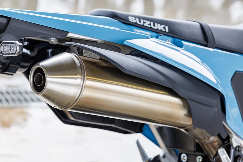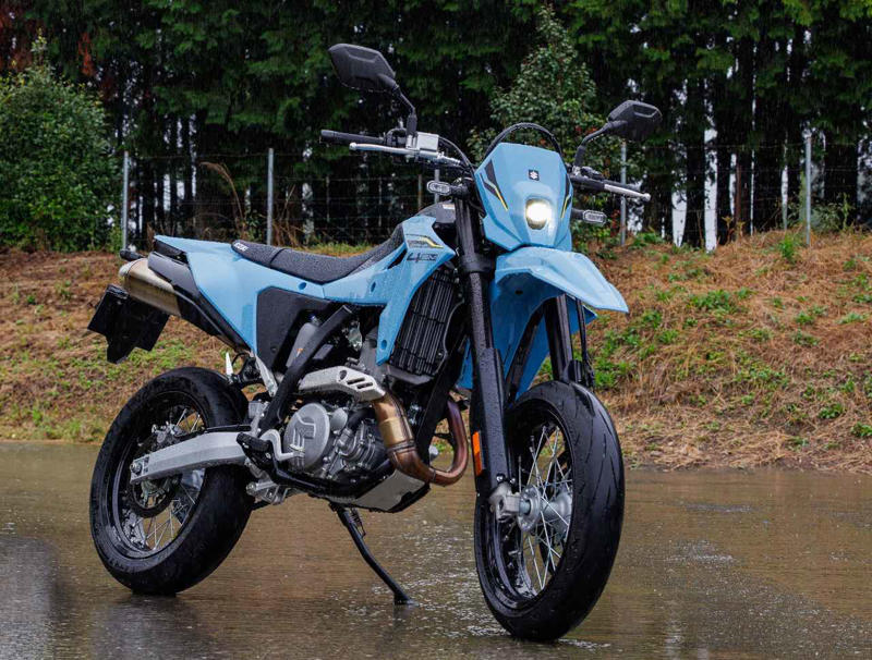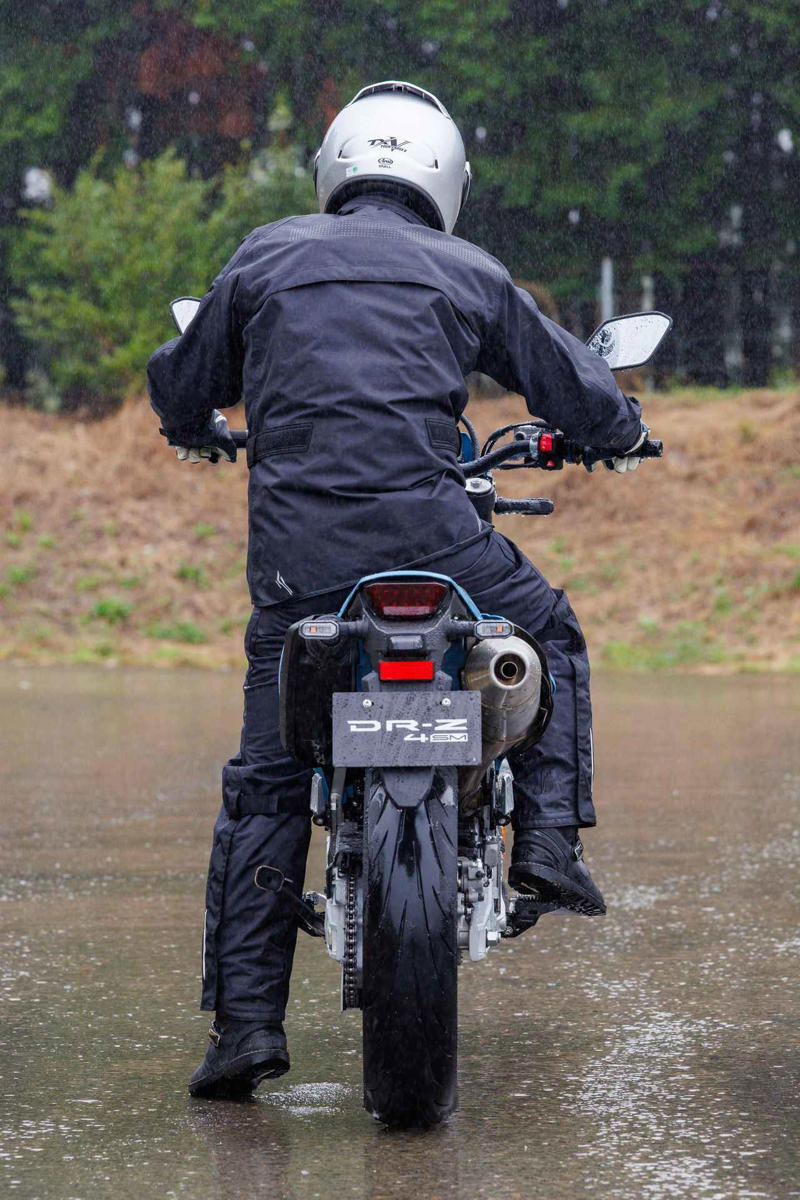 2024年のEICMAで発表されたスズキのDR-Z4SとDR-Z4SMが日本でも販売を開始。往年の名車復活かと思いきや、まるで別物。新たなるスポーツバイクの登場に歓喜!文:小川 勤、オートバイ編集部/写真:南 孝幸▶▶▶写真はこちら|「DR-Z4SM」の全体・各部・走行シーンスズキ「DR-Z4SM」インプレ(小川 勤)SUZUKI DR-Z4SM 2026年モデル総排気量:398cc エンジン形式:水冷4ストDOHC4バルブ単気筒 シート高:890mm 車両重量:154kg発売日:2025年10月8日(水) 税込価格:119万9000円軽快かつパワフルな痛快シングルスポーツ!スーパーモタードというよりライトウエイトスポーツシングル。そんなDR-Z4SMは、ウエット路面でもスポーツライディングの楽しさを確信するのに時間は掛からず、運動性の高さはもちろん、操る楽しさを新鮮さと共に見せてくれた。「今の時代に単気筒エンジンと繊細に向き合うと、これほど面白くなるのか」試乗会では、終始このことを噛み締めながら走った。昔のバイクの復刻は、ともすればネタ切れに思う方もいるだろう。しかし、DR-Z4SMは驚くほどの変貌を遂げ、甦った。それは想像のはるか上をいく完成度で、話題になっている価格に関しても、僕はバリュー・フォー・マネーだと思う。試乗会当日は久しぶりに見た国産メーカーの本気と意地に嬉しくなるほどで、開発陣も「話したい!自慢したくて仕方ない」とても良い雰囲気だった。そんなDR-Z4SMのディテールは細部まで凝っている。サスペンションは400ccモデルとしては希少なアジャスタブル仕様で、エンジンは前モデルがベースだが、多くの部品をリファイン。電子制御機器を隠す場所がないシンプルなDR-Z4シリーズだが、試行錯誤を重ねた様々なディテールを見ると、その開発は気が遠くなるほど大変だったことも伝わってくる。跨るとスリムでこれぞ単気筒スポーツ、オフロード車ベースのメリット。まずSDMSはCを、STCSは2を選択。最も優しい仕様で走り出す。初めてのコース、さらに寒さと緊張でリラックスできない1本目には最適のモードで、バイクがライダーに優しく寄り添ってくれる。画像: スズキ「DR-Z4SM」インプレ(小川 勤)走行中でもスロットルを戻していればモードは変更できるため、色々と試す。ただ、思いのほかSTCSは介入せず、車体とサスペンションがよく機能していることが伝わってくる。バイクに慣れてくるとパワフルなAでも走ることができ、スロットル操作で車体のピッチングを出すことができるため、挙動も軽く感じられた。エンジンはトルクの立ち上がる部分の過渡特性がよく作り込まれ、スロットルを開けた瞬間に後輪が路面を掴み、それをグリップへと転換する振る舞いが素晴らしい。これがスペック以上の力強い加速を見せてくれるポイントだろう。前に座ったり、後ろに座ったりも試すが、僕にはロードスポーツのように後ろに座った方がしっくりくる。サスペンションはよく動くけれど、ウエットだと減衰力が強いイメージで、それでもライダーの小さなアクションに正確に反応するレスポンスの良いハンドリングはとても魅力的だった。しかし、今回の試乗はこのコンディションである。いつかドライ路面でその真価を見たい!スズキ「DR-Z4SM」カラー・人気投票スズキ「DR-Z4SM」ライディングポジション・足つき性シート高:890mmライダーの身長・体重:166cm・68kg画像1: スズキ「DR-Z4SM」ライディングポジション・足つき性DR-Z4Sより30mm高いシートを採用するSM。890mmのシート高は同様の数値だが、SMの方が足つきは良い印象。僕の体格だと両足をつくことはできないが、オフロード車ベースの軽さとスリムさが味方になり、相応のキャリアがあればそれほど難しさを感じさせないはずだ。画像2: スズキ「DR-Z4SM」ライディングポジション・足つき性スズキ「DR-Z4SM」各部装備・ディテール解説LEDを利用した現代のフロントマスクは、アグレッシブなスタイリングに貢献する。旧DR-Z4オーナーが心配する車検も、当然だが簡単にクリアできるとのことだ。LEDを採用したテールライトとウインカー。このあたりの作りが強固なのはハードな走りを想定しているからだろう。左ウインカーの奥に見えるのは、工具箱でなくキャニスター。8000rpmで17%、全域で20%のメカニカルロスを軽減し、パワーと燃費を稼ぐエンジン。燃焼室はツインプラグ化し、IN側バルブはチタン、EX側バルブは中空になっている。ヘッドカバーは軽量なマグネシウム製だ。ユーロ2からユーロ5への排出ガス&騒音規制に対応させるために容量を増やし、2箇所に触媒コンバーターを導入したマフラー。単気筒ならではの小気味良い音質を奏でる。圧側・伸側ダンピングの調整が可能KYB製の倒立フロントフォークを装備。スーパーモトのトラックやオンロードでのスポーツ走行に適した、俊敏かつスポーティーなハンドリング性能を実現する。ホイールはワイヤースポークの前後17インチ。スイングアームはアルミ製で、リアサスペンションは、プリロードの調整に加えて、伸側ダンピングの調整と圧側ダンピ