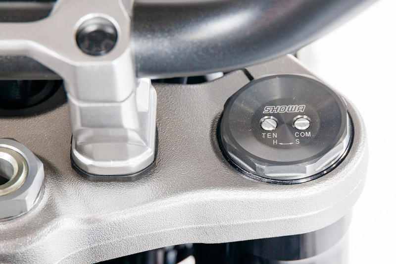 フロントフォークはショーワ製のSFF-BP。ホーネットと同じパーツだが、マシンの性格を考慮して専用セッティングとなる可能性も。