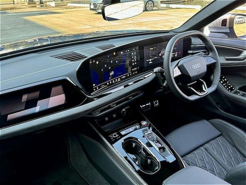 スポーツ(Sport)の頭文字を車名に使ったS5だけに、インテリアもドライビングを楽しませてくれるデザインとなる。トップとボトムの部分が直線的な独特な形状の小径ステアリングホイールと、体を包みこむようなアウディSモデル専用のスポーツシートは、見た目の特別感と、実際の機能を両立させている。