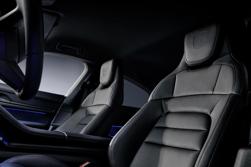 さらにブラックエディションでは、フルカラーのポルシェクレストをあしらったセンターキャップ付き21インチホイール、HDマトリクスLEDヘッドランプ(カイエンブラックエディションはティンテッド)、「PORSCHE」ロゴを映すLEDドアプロジェクター、ヘッドレストにポルシェクレストをあしらったフロントコンフォートシート(14Way電動調節機能およびメモリー機能付き)、ドルビーデジタルを含むBOSEサラウンドサウンドシステム(タイカンはエレクトリックスポーツサウンド付き)、ストレージパッケージ、ブラックのスムースレザートリムも標準で装備される。タイカンのセンターコンソールには、“Black Edition”と記された専用バッジも備わる。