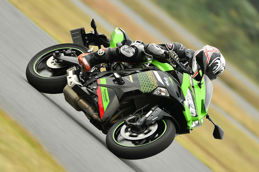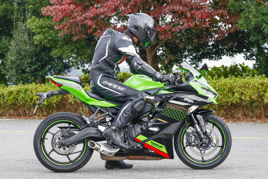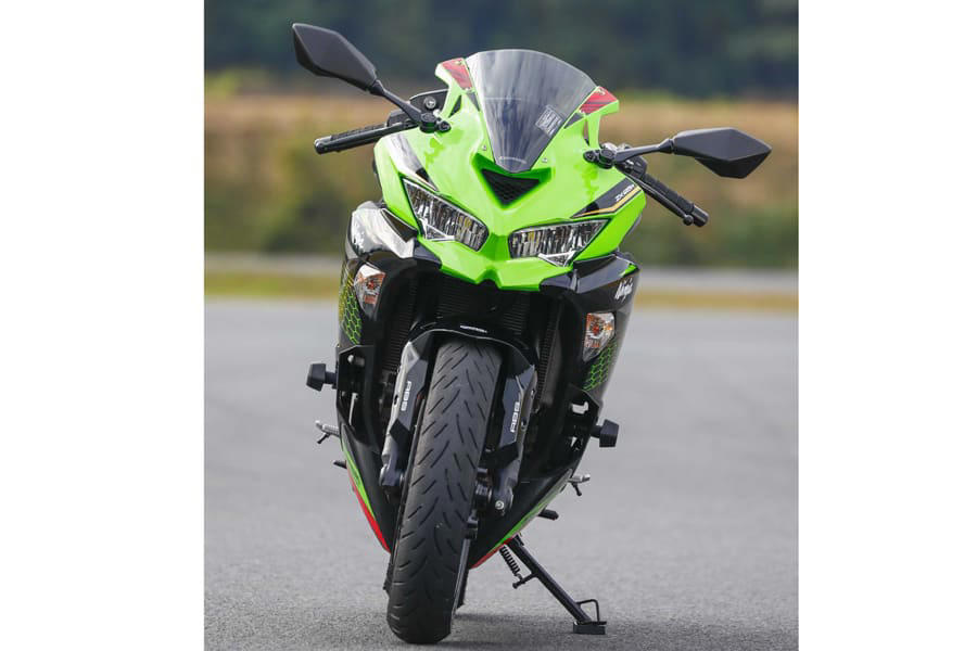 【Historic Bikes/KAWASAKI Ninja ZX-25R】 話題の250cc 4気筒を中野真矢がインプレッション!※この記事は過去に掲載された記事を再編集した内容です。 レーサーレプリカ全盛時代、多くのライダーが250ccでバイクの魅力に目覚め、やがてヨンヒャク、そしてナナハンへとステップアップしていった。しかしそれは過去の思い出ではない。カワサキがこのクラスに4気筒エンジンを復活させたことで、若者のみならずアラフィフライダーも再び注目。その最新事情を探るべく、国産250ccスポーツの実力に迫った。 Tester 中野真矢 Shinya NakanoTZR250で鈴鹿4耐を制し(’94年 )、’98年に全日本GP250タイトルを獲得。 WGP250ではランキング2位(’00年 )まで上り詰めた元MotoGPライダー 250ccの世界に変革をもたらした入魂のエンジン ライダースクラブ10月号の試乗インプレッションに続き、再びニンジャZX25 Rに乗ることができた。前回は高いアベレージスピードを誇るオ ートポリスだったが、今回はその対極とも言える筑波コース1000だ。タイトなサーキットで見せた、その振る舞いを報告していこう。 少し離れて見ると、250㏄であることは感じさせない、ワンランク上のサイズ感だ。600㏄と言われれば素直に納得してしまうほどボリュームがあるものの、実際にまたがるとすべてが手の内にあり、過度な前傾姿勢も強いられない。 全体的にはツアラーのような安楽さと表現しても差し支えなく、ステップも低い位置にセット。上半身にも下半身にもゆとりがあり、ポジションは極めて快適だ。 ワンランク上という印象は、走り出してからも変わらない。落ち着いたハンドリングも高い精度で切り換わっていくミッションも上質で、「250㏄はこんなもの」という安普請さがどこにもないのだ。 そんなZX25Rで語るべきは、やはりまったくのゼロから開発された並列4気筒エンジンだろう。 80年代から90年代初頭のバイクシーンを知る世代のライダーにとっては待望の復活であり、若者には驚きをもって迎えられているようだ。 77年生まれの僕は、その狭間にいる世代かもしれない。ロードレースにデビューした頃の250㏄クラスといえば2ストロークが主流であり、現役を引退して市販車に目が向くようになった頃は、単気筒か2気筒の4ストロークを搭載したエントリーモデルがいくつかある程度。近年は徐々にスポーツ性が高められてきたとはいえ、大半が実用的なユニットだった。 フロントまわりの安心感はMotoGPマシンZX-RRにも通じるもので、高いスタビリティが光るそのため、僕自身も穏やかな250㏄の特性にすっかり慣らされていた。それらは上まで回すよりも早め早めにシフトアップするような乗り方になるのだが、そのイメージでZX25 Rに乗ると、本来のポテンシャルの半分も知ることができない。 なぜなら、 2気筒の250㏄が回転の上限を迎えてもなお、ZX25Rはパワーバンドに入らず、そこからひと開けもふた開けも要求。乗り 手が望めば 1 万8000rpmまで きっちりと回り切ってみせる。 最初は「こんなところまで使っていいの?」とためらわれたものの、その時に発せられる高回転サウンドの刺激には抗えない。 バイクはそもそも非日常的な側面があるが、ZX25Rのそれは格別だ。 もちろん、絶対的なパワーやスピードは、リッタースーパースポーツに比べるべくもない。しかしながら、バイクを操る醍醐味や官能性には様々なアプローチがあることを教えてくれたのがこのモデルだ。 抜群の節度でギアが切り変わっていくクイックシフター(SEに標準 装備)やしなやかな足まわり、モトGPマシンやZX10RRとも共通するフロントの安心感……といった美点がエンジンの心地よさを引き立て、ライディングに没頭させてくれる。 実際、僕のまわりには大型バイクからこちらに乗り換えた人が少なからずいる。ベテランを裏切らない完成度が確かにあるのだ。 SBK6連覇という偉業を達成したフラッグシップZX-10RRのイメ ージが巧みに落とし込まれ、250ccには見えないフォルムが魅力だRiding Positionシート高は785mm。 見た目の印象とは裏腹に足つき性はよく、前傾も強いられない。ツーリングも難なくこな す安楽なポジションだKAWASAKI Ninja ZX-25R SE KRT EDITION DETAILS 右:リアサスペンションにはリンクを装備。プリロード調整は5段階、左:フロントフォークはショーワのφ37mmSFF-BPで高い路面追従性に貢献 メーターにはシフトアップタイミングを任意に設定できるインジケーターを装備ハンドル幅は実測値で約685mm(バーエンド含まず)。今回の車両中、最もワイドだラジアルマウントされたモノブロックキャリパーを採用。φ310mmのディスクを組み合わせる。標準装着タイヤはダンロップのラジアルGPR300だ上級グレードのSEには、ギアのアップとダウンに対応するシフターを装備SPECIFICATIONS●エンジン:水冷4ストローク並列4気筒●排気量:249cc●最高出力:45ps/15500rpm●最大トルク:2.1kgf・m/13000rpm●ボア×ストローク:50.0mm×31.8mm●軸間距離:1380mm●シート高:785mm●車両重量:184kg●フレーム:スチールトレリス●フロン