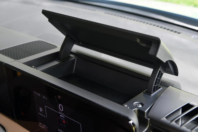新設された運転席前アッパーボックスは、サッと取り出しやすい位置に配置されている。このほか収納スペースの進化も新型の大きな特徴となる。